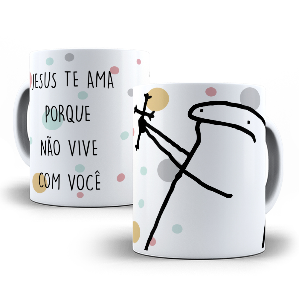 Caneca Meme Flork Porcelana 325ml - Jesus Te Ama